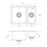 2000 Series 1 And 1/2 Bowl Sink - 304 grade stainless steel, 0.9mm thickness