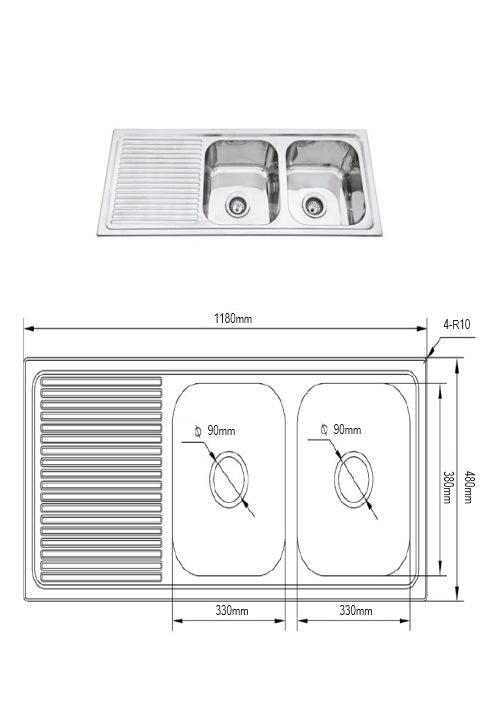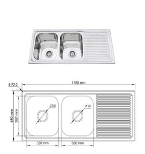 Athens 1180mm Double Bowl Single Drainer Kitchen Sink