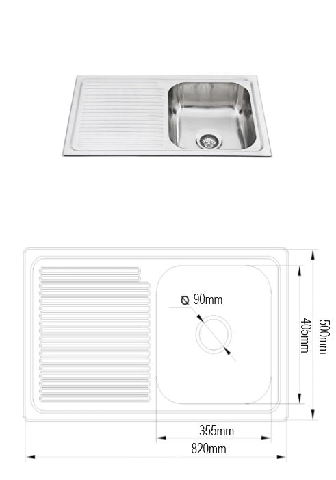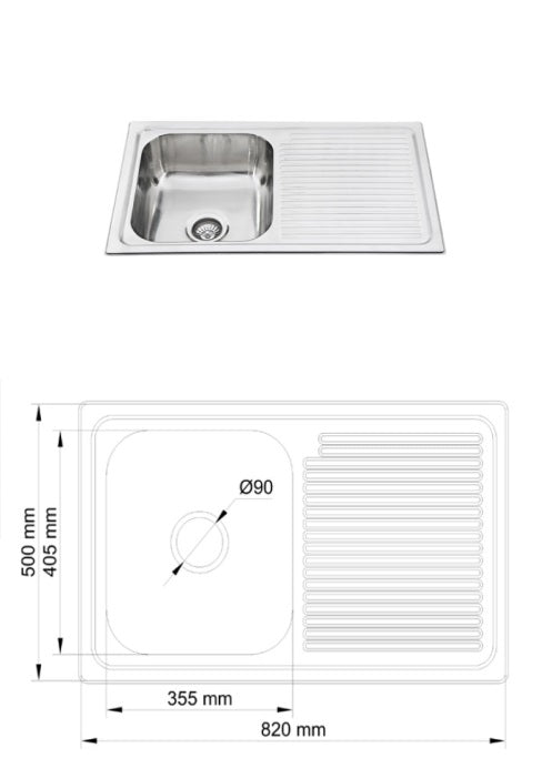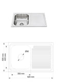 Athens 820mm Single Bowl Single Drainer Kitchen Sink