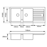 - Sink dimension: L 1160mm x W 500mm x H 200mm Approx.