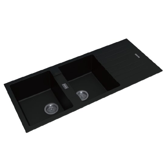 Double Bowl Black Granite Top Mount/ Undermount Kitchen Sink