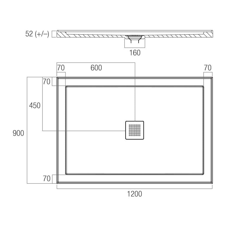 EC1290C Eco 1200mm x 900mm Centre Outlet Shower Base White