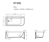 Franca 1500mm LH Corner Freestanding Bath Matte White