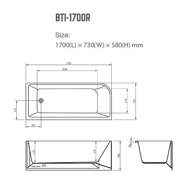 Franca 1700mm RH Corner Freestanding Bath