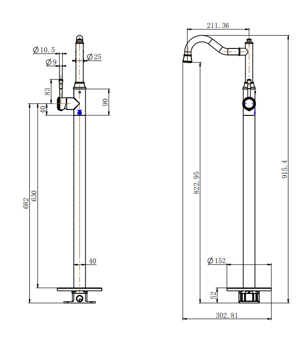 MON012-1 – Montpellier Shepherds Crook Freestanding Bath Filler Mixer
