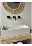 • Remembering that our concrete is both water tolerant and stain resistant but not water and stain proof. Ensuring you wipe and clean as you use is essential to the ongoing care of your beautiful basin. Over time your basin will gain character, as it is a natural ageing product.