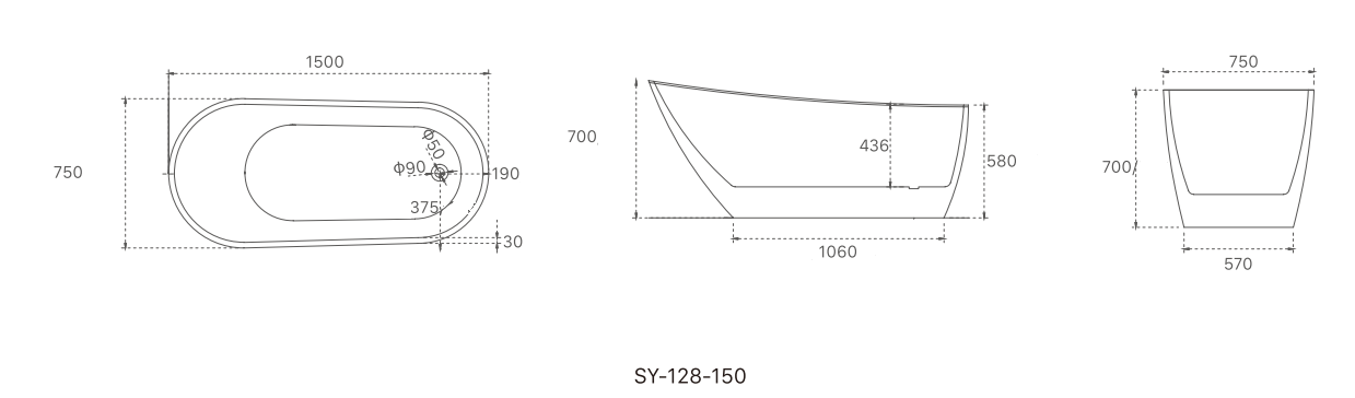 SY-128-1500 Nova 1500mm Freestanding Acrylic Bath