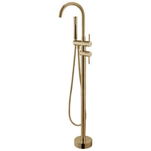 Pentro Brushed Gold Floorstanding Bath Spout With Mixer & Handheld