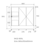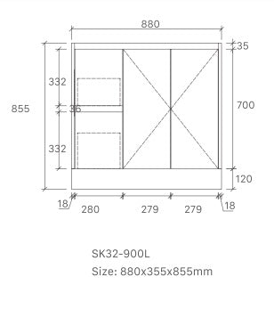 - Approximately 900mm wide x 360mm deep x 880mm high