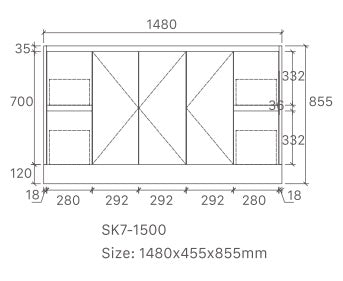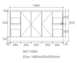 - Approximately 1500mm wide x 460mm deep x 880mm high