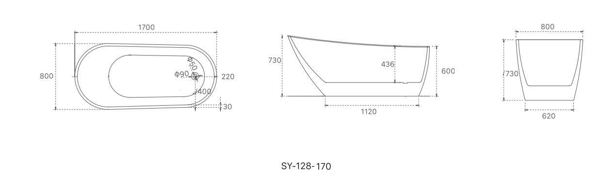 SY-128-1700 Nova 1700mm Freestanding Acrylic Bath