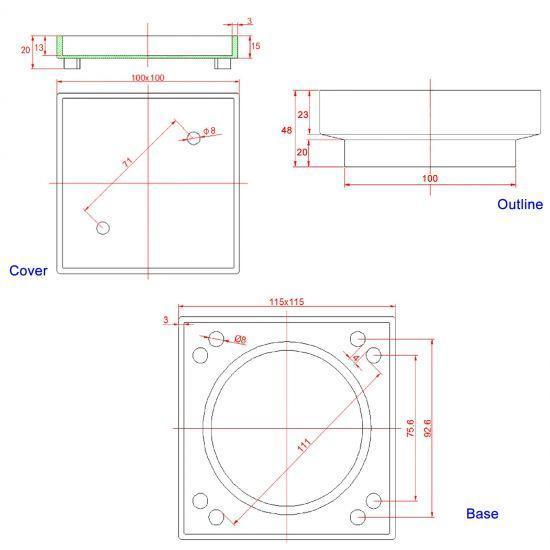 Tile Insert Floor Waste 115x115mm 100mm Outlet